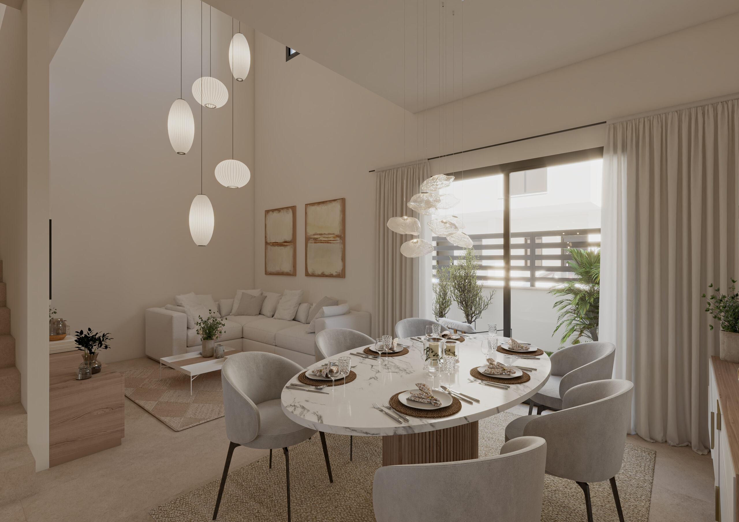 La arquitectura de Las Piletas destaca por su tipología contemporánea y funcional, donde cada espacio ha sido pensado para favorecer la relación con el entorno. El salón-comedor se integra con la cocina y el jardín privado, permitiendo que la luz natural inunde cada estancia.